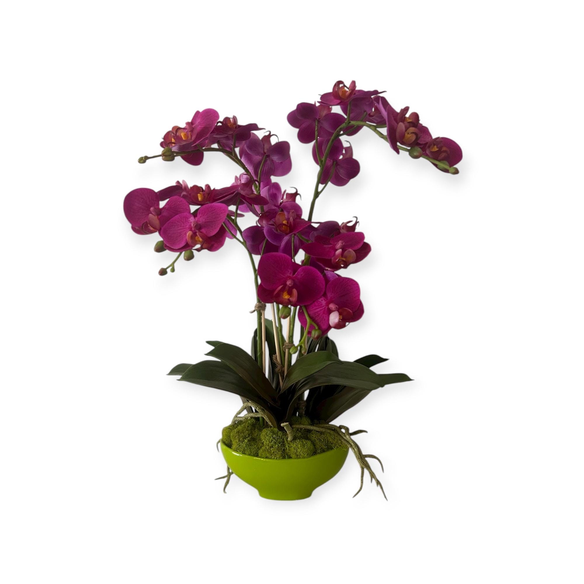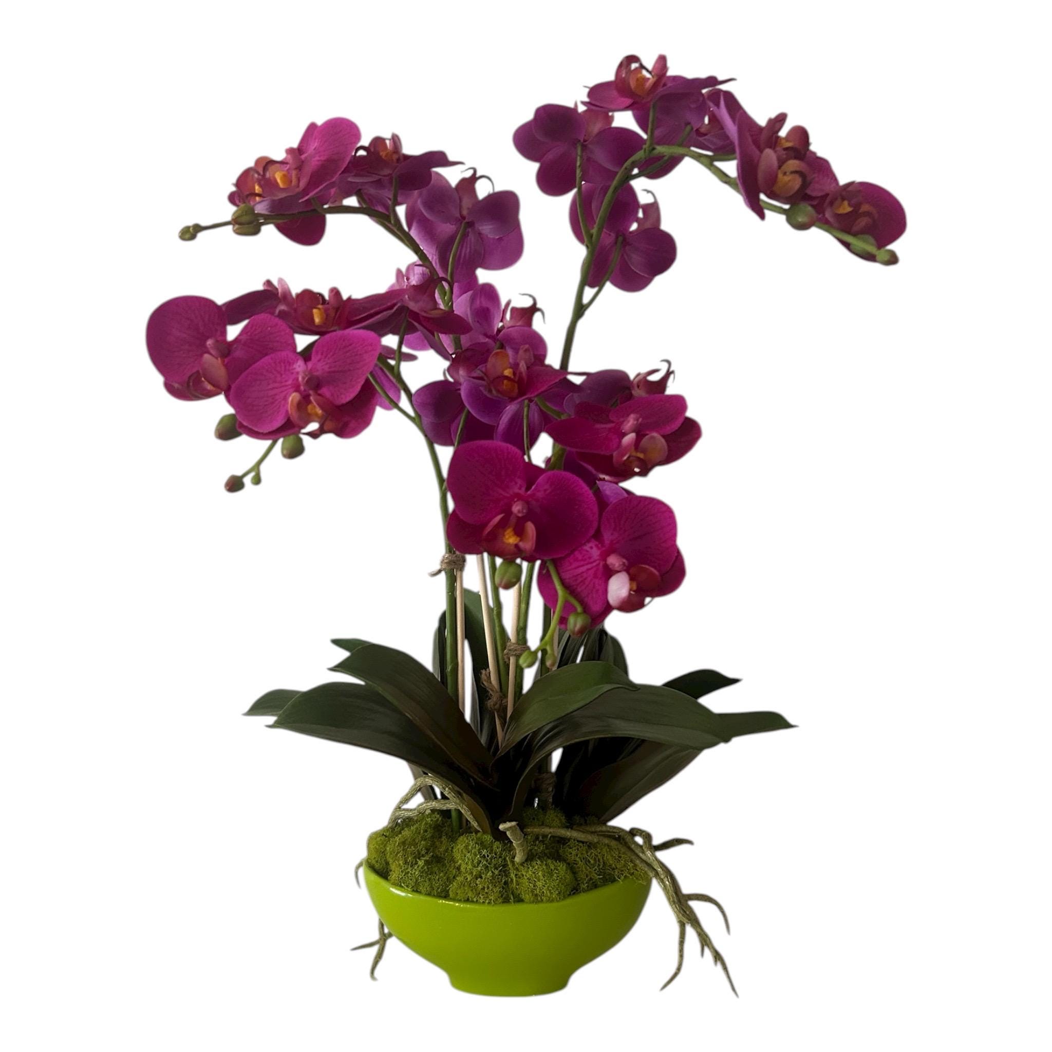 Perfect for coffee tables, desks, entryways, or as a long-lasting gift for someone special. The realistic Phalaenopsis blooms make it a beautiful accent that brightens any space with natural charm and modern style.